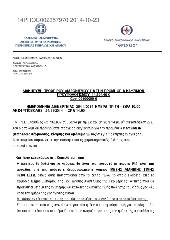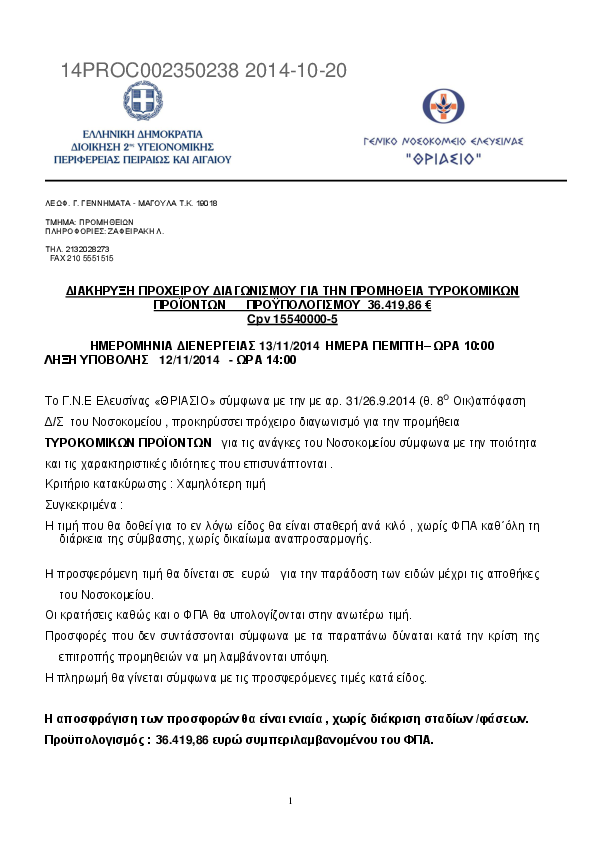 Αναζήτηση σε προκηρύξεις και συμβάσεις για: