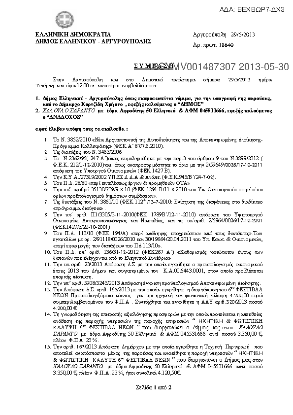 7. ΣΥΜΒΑΣΗ ΗΧΗΤΙΚΗΣ & ΦΩΤΙΣΤΙΚΗΣ ΚΑΛΥΨΗΣ ΤΗΣ ΕΚΔΗΛΩΣΗΣ ΣΧΟΛΗΣ ΚΡΟΥΣΤΩΝ ΚΑΙ ΣΥΓΧΡΟΝΟΥ ΧΟΡΟΥ
