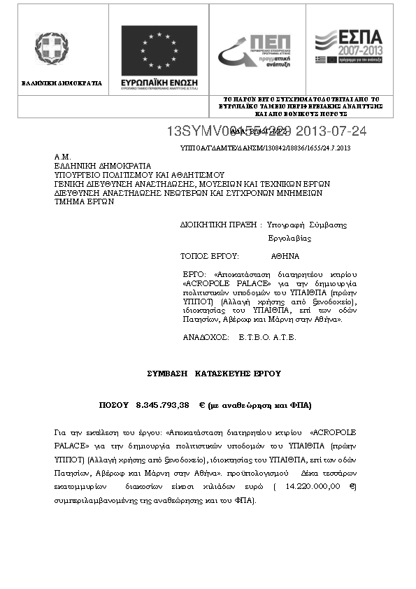 9. ΣΥΜΒΑΣΗ ΚΑΤΑΣΚΕΥΗΣ ΕΡΓΟΥ Αποκατάσταση διατηρητέου κτιρίου «ACROPOLE PALACE»