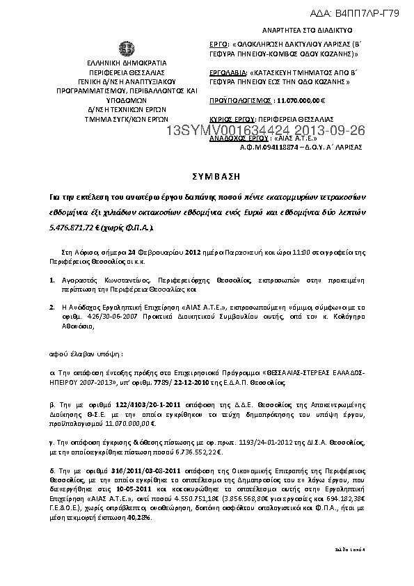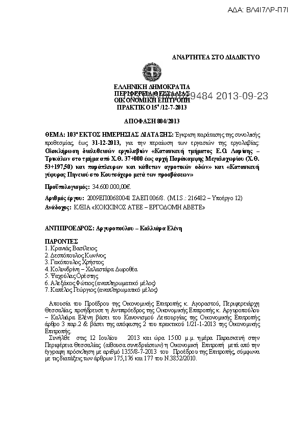 9. Ολοκλήρωση διαλυθεισών εργολαβιών «Κατασκευή τμήματος Ε.Ο. Λαρίσης – Τρικάλων στο τμήμα από Χ.Θ. 37+