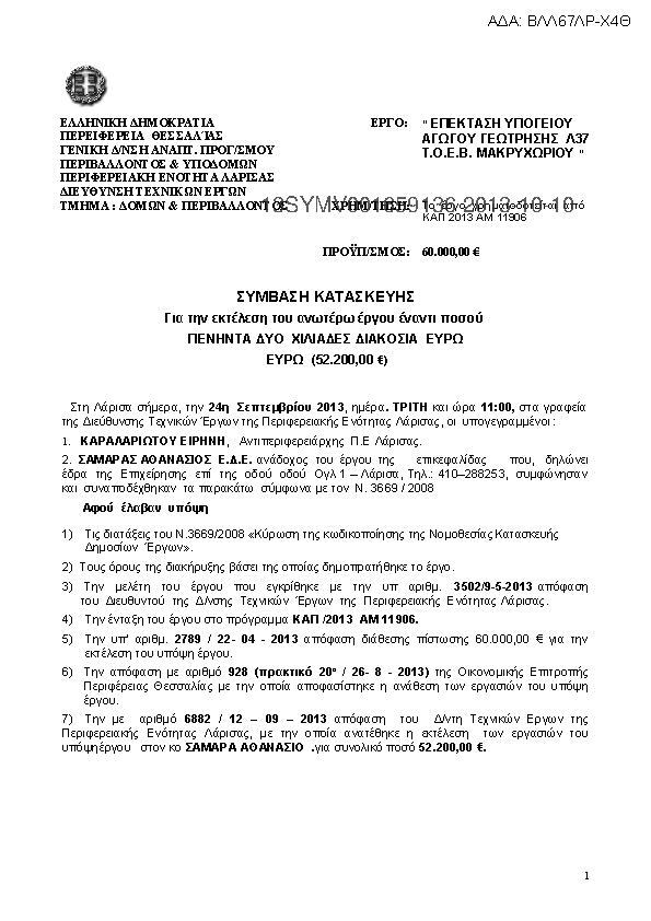 3. ΣΥΜΒΑΣΗ ΚΑΤΑΣΚΕΥΗΣ “ ΕΠΕΚΤΑΣΗ ΥΠΟΓΕΙΟΥ ΑΓΩΓΟΥ ΓΕΩΤΡΗΣΗΣ Λ37 Τ.Ο.Ε.Β. ΜΑΚΡΥΧΩΡΙΟΥ ”