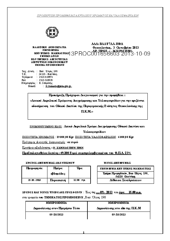 5. Προκήρυξη Πρόχειρου Διαγωνισμού για την προμήθεια :«Λογισμικού Συνολικής Διαχείρισης και Υπηρεσιών Εγκατάστασης για τα Δημόσια ΚΤΕΟ Θεσ/νικης – Χαλκιδικής – Σερρών – Πιερίας