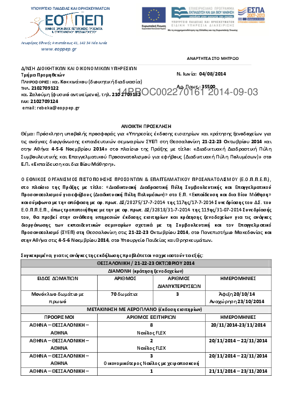 7. Υπηρεσίες έκδοσης εισιτηρίων και κράτησης ξενοδοχείων για Θεσκη κ Αθήνα στο πλαίσιο της Πύλης εφήβων