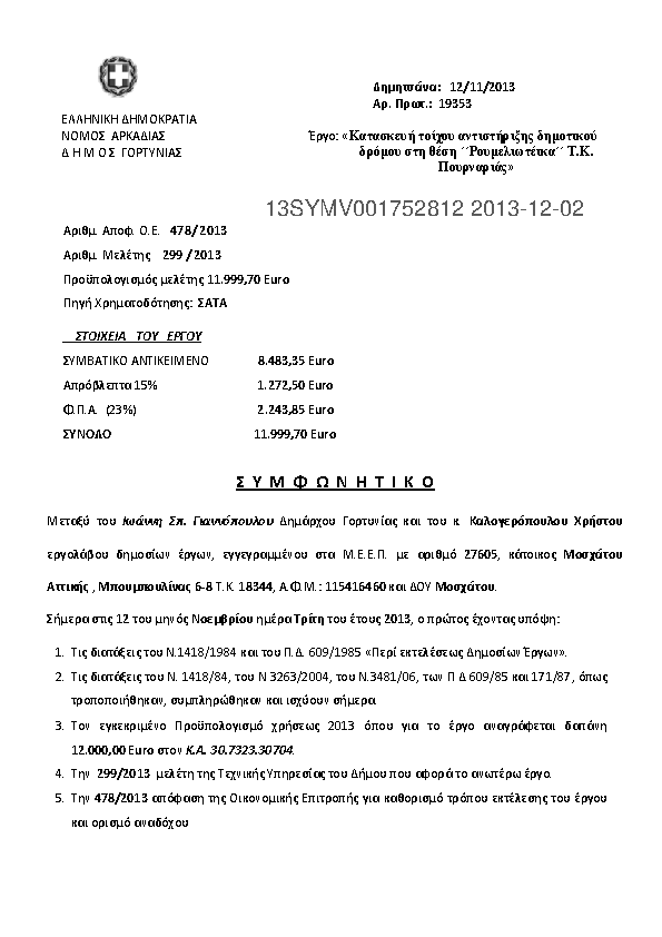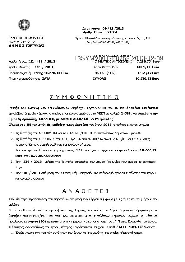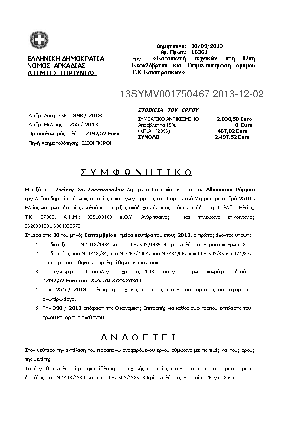 3. Περιληψη Διακηρυξης του Εργου: Κατασκευή γηπέδου μπάσκετ – βόλεϊ στο Γυμνάσιο – Λύκειο Δημητσάνας