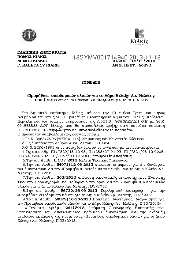 6. «Προμήθεια οικοδομικών υλικών για το Δήμο Κιλκίς» ΑΡ. ΜΕΛ.: Π 33 / 2013