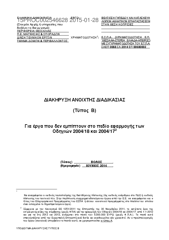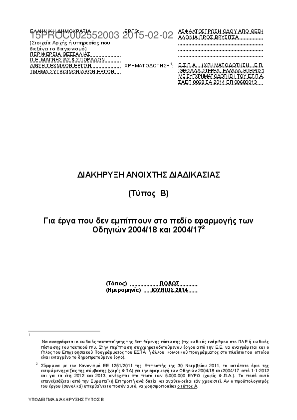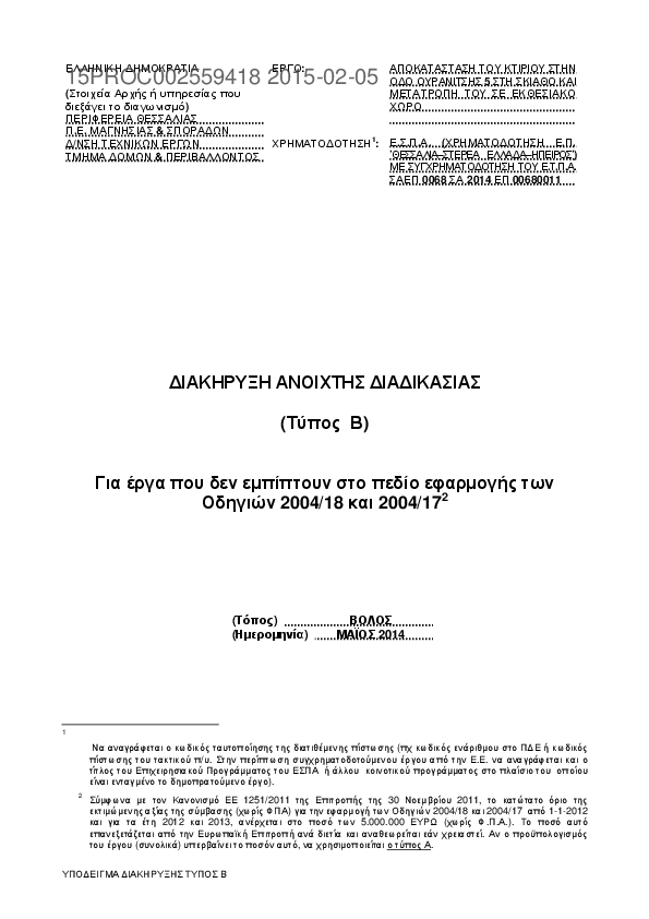 Αναζήτηση σε προκηρύξεις και συμβάσεις για: