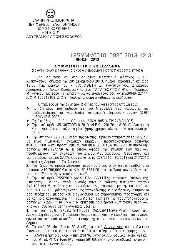 6. Συμφωνητικό εκτέλεσης έργου «Επισκευή σχολικών κτιρίων»