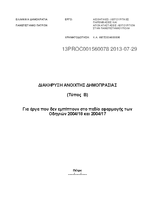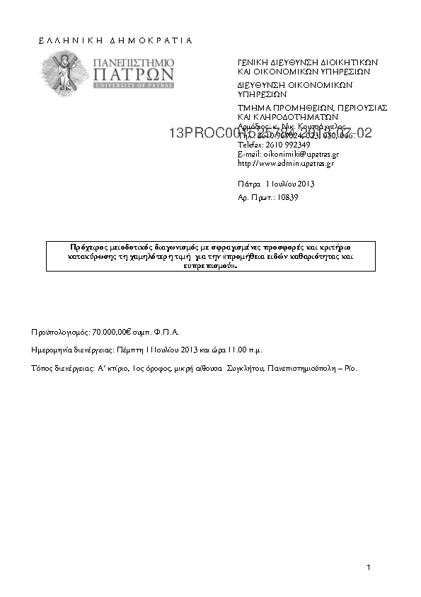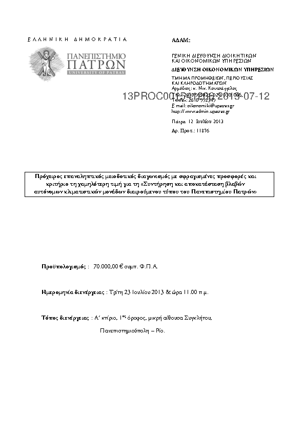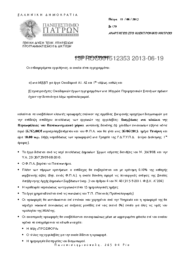 4. ΔΙΑΚΗΡΥΞΗ ΠΡΟΧΕΙΡΟΥ ΜΕΙΟΔΟΤΙΚΟΥ ΔΙΑΓΩΝΙΣΜΟΥ ΠΑΝΕΠΙΣΤΗΜΙΟ ΠΑΤΡΩΝ