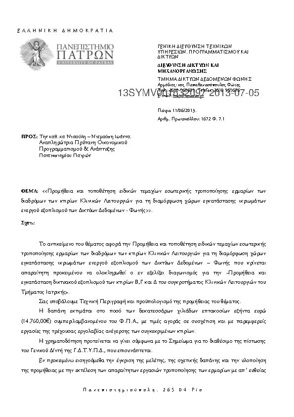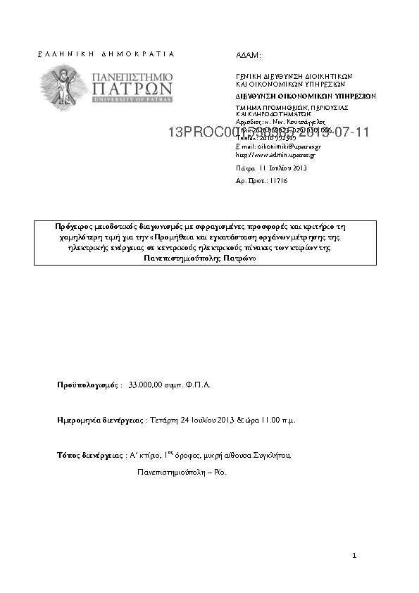 6. ΔΙΕΝΕΡΓΕΙΑ ΠΡΟΧΕΙΡΟΥ ΔΙΑΓΩΝΙΣΜΟΥ ΓΙΑ ΤΗΝ ΠΡΟΜΗΘΕΙΑ & ΕΓΚΑΤΑΣΤΑΣΗ ΟΡΓΑΝΩΝ ΜΕΤΡΗΣΗΣ ΤΗΣ ΗΛΕΚΤΡΙΚΗΣ ΕΝΕΡΓΕΙΑΣ ΣΕ ΚΕΝΤΡΙΚΟΥΣ ΗΛΕΚΤΡΙΚΟΥΣ ΠΙΝΑΚΕΣ ΤΩΝ ΚΤΙΡΙΩΝ ΤΗΣ ΠΑΝΕΠΙΣΤΗΜΙΟΥΠΟΛΗΣ ΠΑΤΡΩΝ