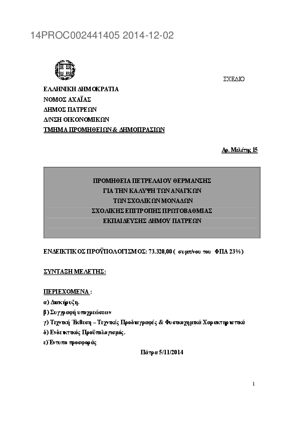 2. ΠΡΟΜΗΘΕΙΑ ΠΕΤΡΕΛΑΙΟΥ ΘΕΡΜΑΝΣΗΣ ΓΙΑ ΣΧΟΛΙΚΕΣ ΜΟΝΑΔΕΣ ΣΧ. ΕΠΙΤΡΟΠΗΣ ΠΡΩΤΟΒΑΘΜΙΑΣ ΕΚΠΑΙΔ. Δ. ΠΑΤΡΕΩΝ