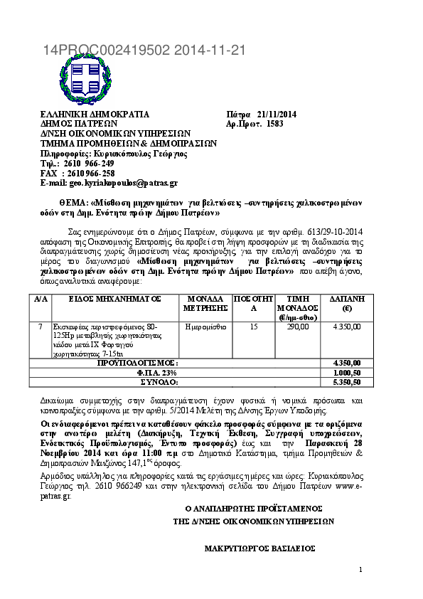 1. ΒΕΛΤΙΩΣΕΙΣ ΣΥΝΤΗΡΗΣΕΙΣ ΧΑΛΙΚΟΣΤΡΩΜΕΝΩΝ ΟΔΩΝ ΠΡΩΗΝ ΔΗΜΟΥ ΠΑΤΡΕΩΝ