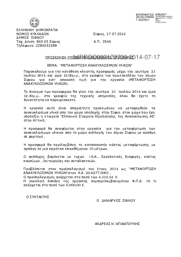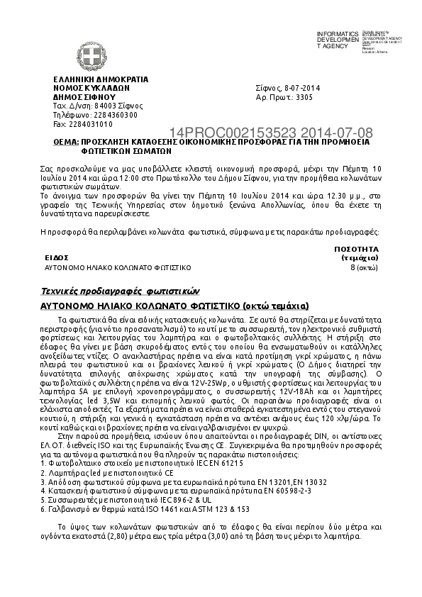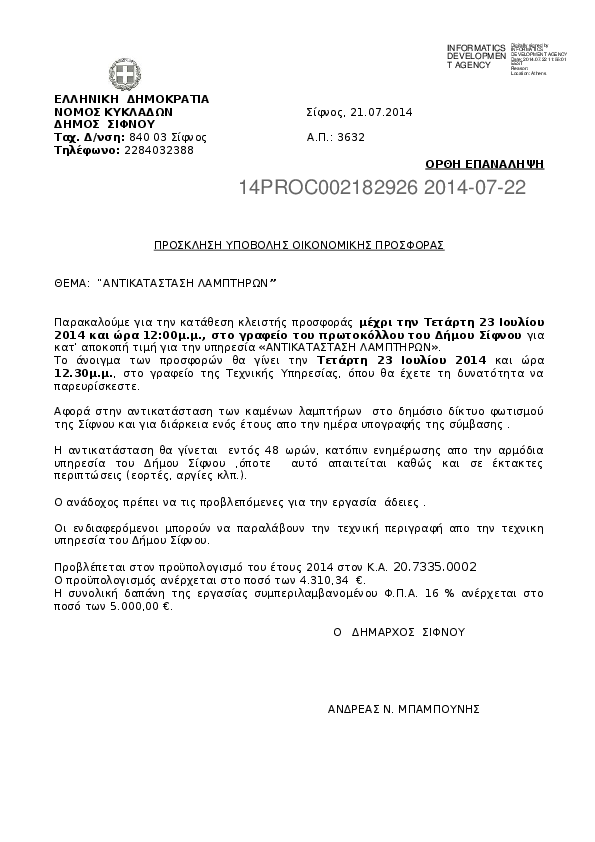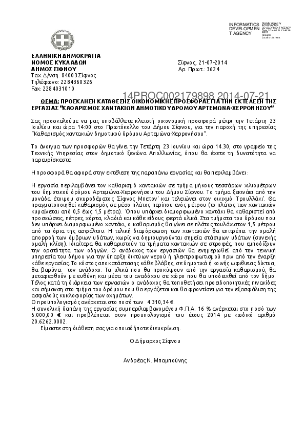 Αναζήτηση σε προκηρύξεις και συμβάσεις για:  Προϋπολογισμός