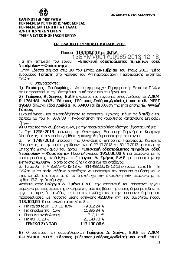 7. ΣΥΝΤΗΡΗΣΗ ΕΘΝΙΚΟΥ ΟΔΙΚΟΥ ΔΙΚΤΥΟΥ ΑΡΜΟΔΙΟΤΗΤΑΣ Π.Ε. ΗΜΑΘΙΑΣ