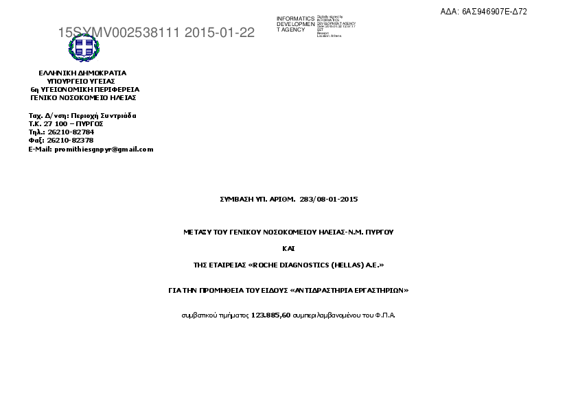 6. ΠΡΟΚΗΡΥΞΗ ΓΕΝΙΚΟΥ ΝΟΣΟΚΟΜΕΙΟΥ ΗΛΕΙΑΣ ΓΙΑ ΜΕΤΑΦΟΡΑ ΒΙΟΛΟΓΙΚΟΥ ΥΛΙΚΟΥ