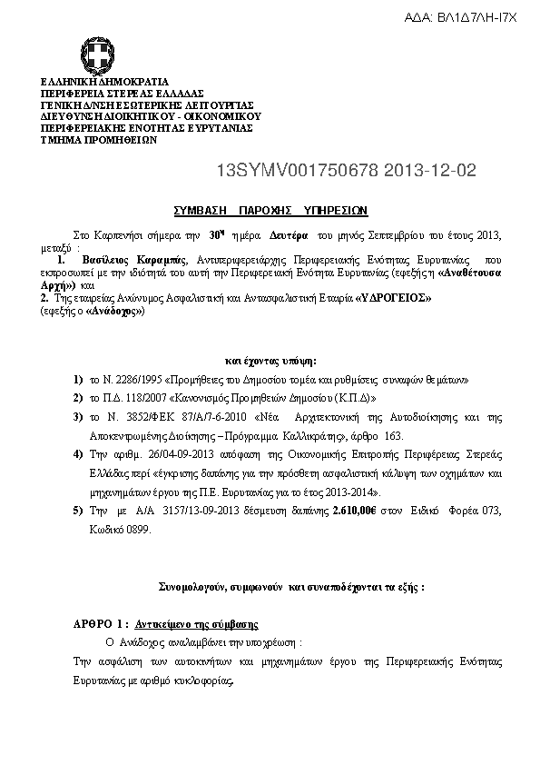3. ΑΜΟΙΒΗ ΓΙΑ ΠΡΟΣΘΕΤΗ ΑΣΦΑΛΙΣΤΙΚΗ ΚΑΛΥΨΗ ΤΩΝ ΟΧΗΜΑΤΩΝ ΚΑΙ ΜΗΧΑΝΗΜΑΤΩΝ ΕΡΓΟΥ ΤΗΣ Π.Ε ΕΥΡΥΤΑΝΙΑΣ