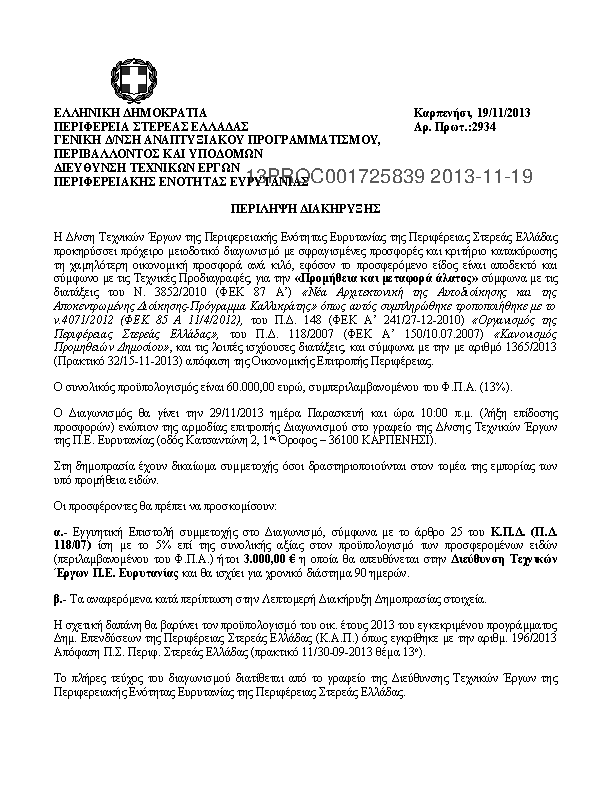 6. ΠΕΡΙΛΗΨΗ ΔΙΑΚΗΡΥΞΗΣγια την «Προμήθεια και μεταφορά άλατος», προϋπολογισμού 60.000,00 ευρώ συμπεριλαμβανομένου του Φ.Π.Α. (13%).