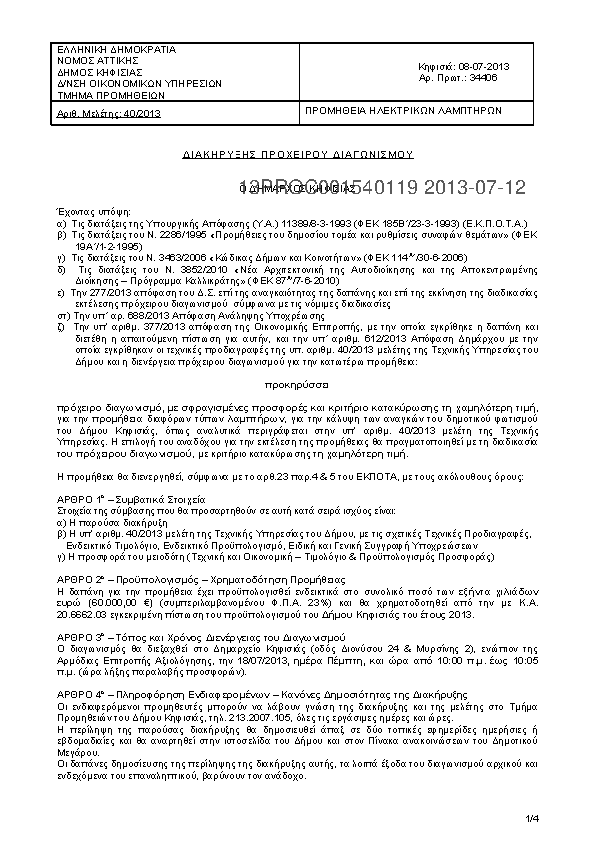 7. ΔΙΑΚΗΡΥΞΗ ΠΡΟΧΕΙΡΟΥ ΔΙΑΓΩΝΙΣΜΟΥΓΙΑ : «ΠΡΟΜΗΘΕΙΑ ΗΛΕΚΤΡΙΚΩΝ ΛΑΜΠΤΗΡΩΝ»