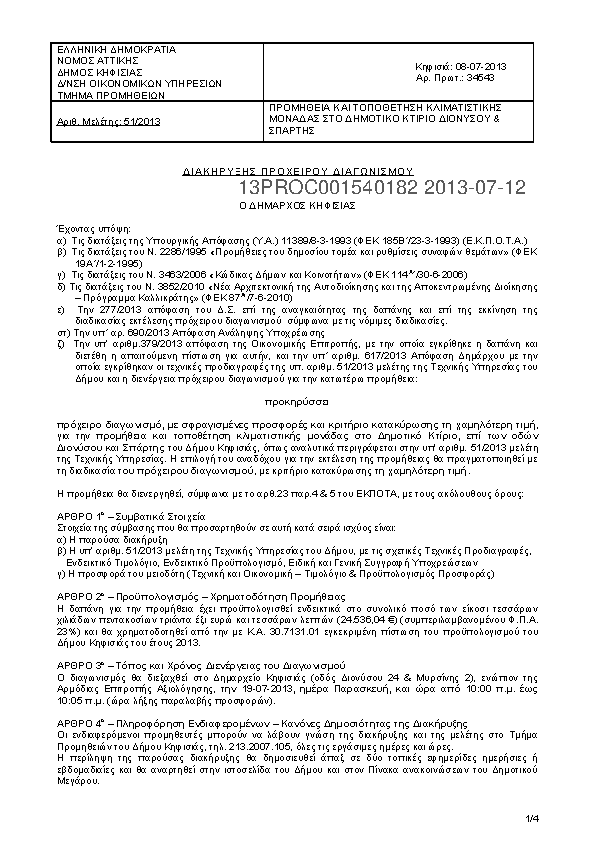 9. ΔΙΑΚΗΡΥΞΗ ΠΡΟΧΕΙΡΟΥ ΔΙΑΓΩΝΙΣΜΟΥ ΓΙΑ ΠΡΟΜΗΘΕΙΑ ΚΑΙ ΤΟΠΟΘΕΤΗΣΗ ΚΛΙΜΑΤΙΣΤΙΚΗΣ ΜΟΝΑΔΑΣ ΣΤΟ ΔΗΜΟΤΙΚΟ ΚΤΙΡ