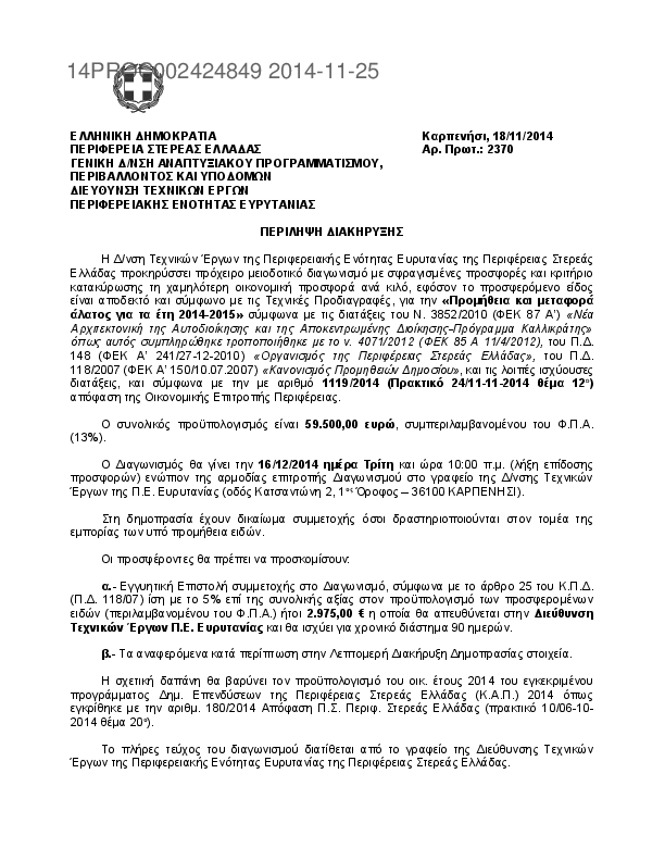 6. ΗΛΕΚΤΡΟΝΙΚΟΣ ΑΝΟΙΚΤΟΣ ΔΗΜΟΣΙΟΣ ΔΙΕΘΝΗΣ ΔΙΑΓΩΝΙΣΜΟΣ ΓΙΑ ΤΟ ΕΡΓΟ "ΜΕΤΑΦΟΡΑ ΜΑΘΗΤΩΝ, ΧΩΡΙΚΗΣ ΑΡΜΟΔΙΟΤΗΤΑΣ Π.Ε ΕΥΡΥΤΑΝΙΑΣ, ΓΙΑ ΤΗΝ ΧΡΟΝΙΚΗ ΠΕΡΙΟΔΟ ΑΠΟ 1η ΜΑΡΤΙΟΥ 2015 ΜΕΧΡΙ 30 ΙΟΥΝΙΟΥ 2015 ΤΟΥ ΣΧΟΛΙΚΟΥ ΕΤΟΥΣ 2014-2015"