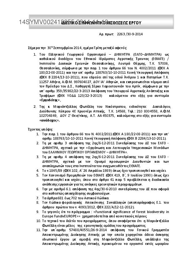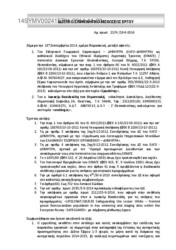 4. ΙΔΙΩΤΙΚΟ ΣΥΜΦΩΝΗΤΙΚΟ ΜΙΣΘΩΣΕΩΣ ΕΡΓΟΥ ΣΕ ΕΝΑ ΔΑΣΟΛΟΓΟ- ΠΡΟΓΡΑΜΜΑ LIFE SAFEGUARD