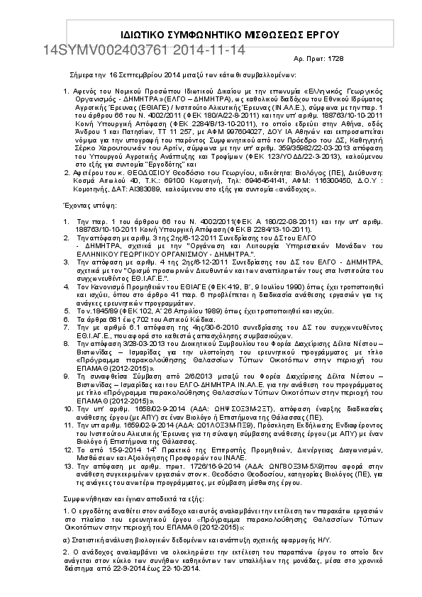 3. ΙΔΙΩΤΙΚΟ ΣΥΜΦΩΝΗΤΙΚΟ ΜΙΣΘΩΣΕΩΣ ΕΡΓΟΥ ΣΕ ΕΝΑ ΔΑΣΟΛΟΓΟ- ΠΡΟΓΡΑΜΜΑ LIFE SAFEGUARD