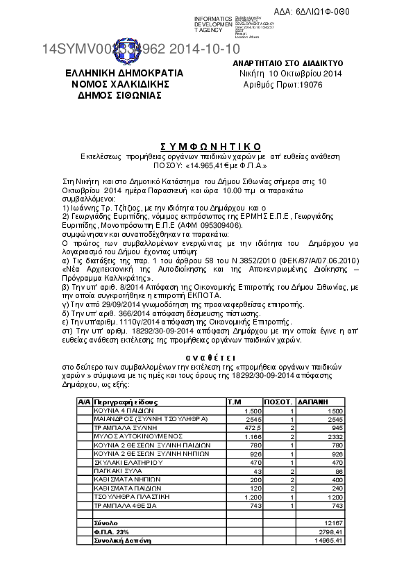 2. Συμφωνητικό για προμήθεια οργάνων παιδικών χαρών
