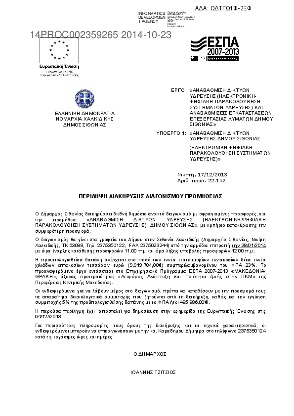 Αναζήτηση σε προκηρύξεις και συμβάσεις για: