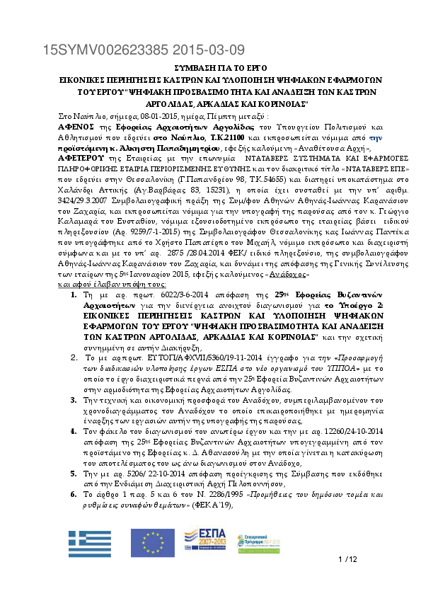 1. ΣΥΜΒΑΣΗ ΓΙΑ ΤΙΣ ΕΙΚΟΝΙΚΕΣ ΠΕΡΙΗΓΗΣΕΙΣ ΚΑΣΤΡΩΝ ΚΑΙ ΥΛΟΠΟΙΗΣΗ ΨΗΦΙΑΚΩΝ ΕΦΑΡΜΟΓΩΝ