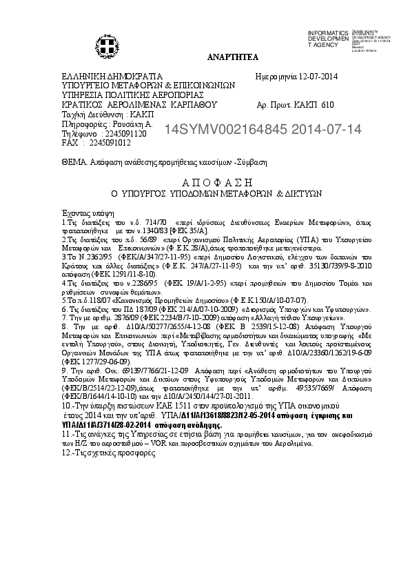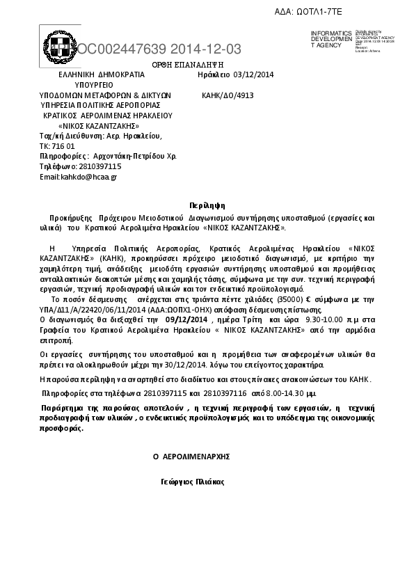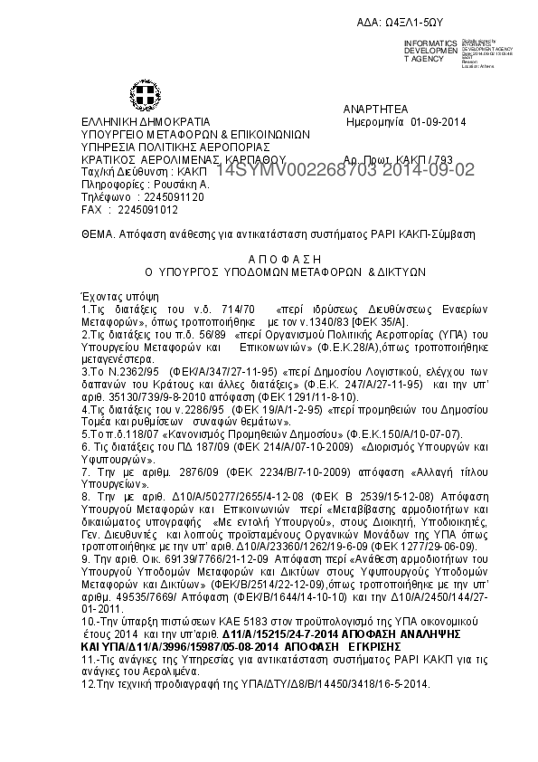 4. Απόφαση ανάθεσης για αντικατάσταση συστήματος PAPI ΚΑΚΠ-Σύμβαση