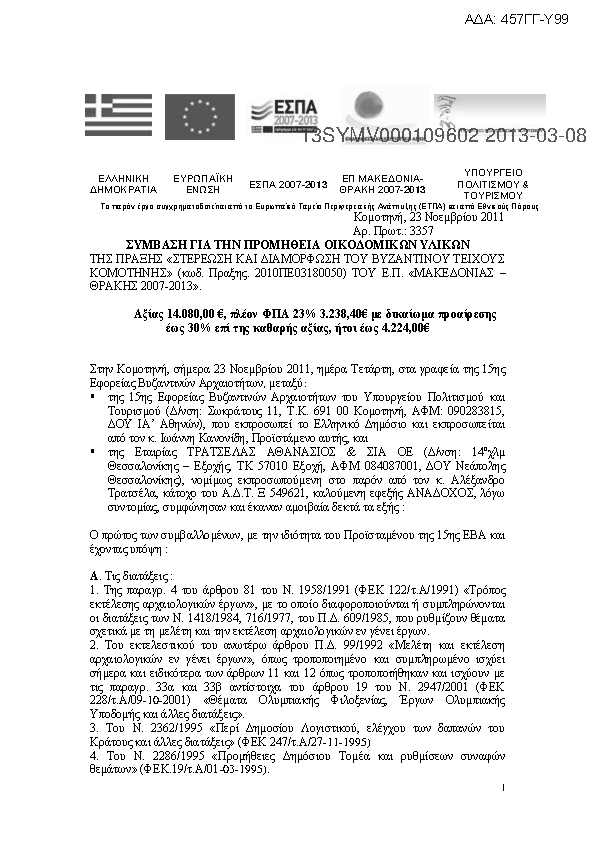 3. Σύμβαση για προμήθεια υλικών συντήρησης
