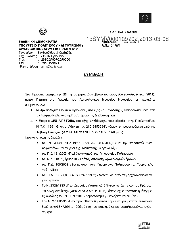 Αναζήτηση σε προκηρύξεις και συμβάσεις για: