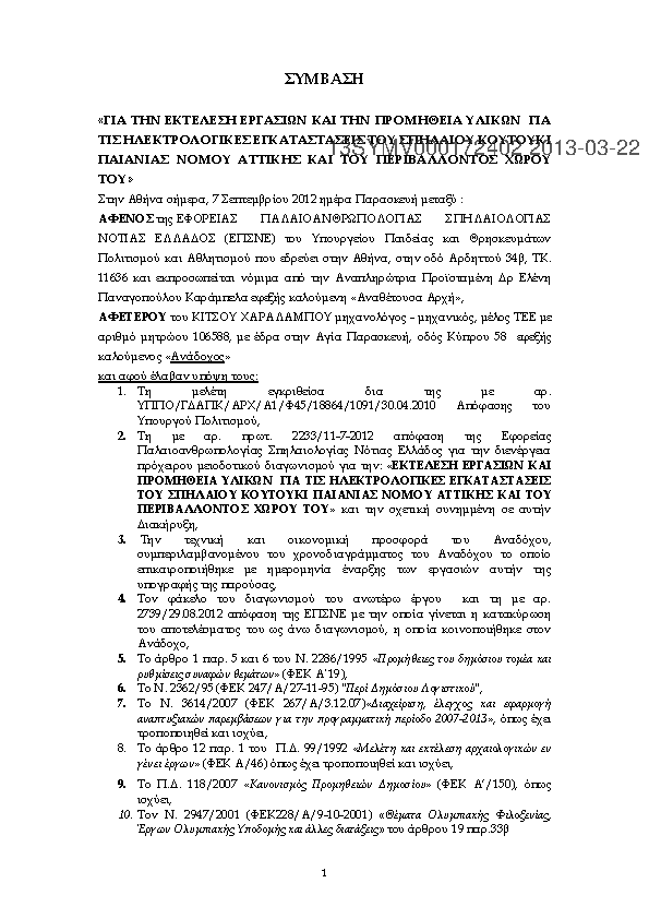 9. Σύμβαση για εκτέλεση εργασιών και προμήθεια υλικών ηλεκτρ/κων εγκαταστάσεων του σπ Κουτούκι Παιανίας