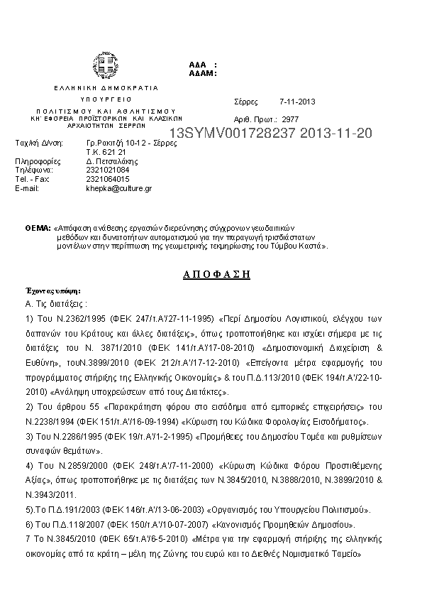 2. ΑΠΟΦΑΣΗ ΑΝΑΘΕΣΗΣ ΕΡΓΑΣΙΩΝ ΔΙΕΡΕΥΝΗΣΗΣ ΣΥΓΧΡΟΝΩΝ ΓΕΩΔΑΙΤΙΚΩΝ ΜΕΘΟΔΩΝ ΚΑΙ ΔΥΝΑΤ. ΑΥΤΟΜΑΤΙΣΜΟΥ