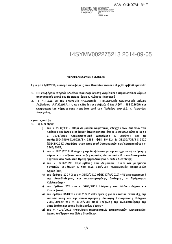 1. ΠΡΟΓΡΑΜΜΑΤΙΚΗ ΣΥΜΒΑΣΗ "ΔΗΜΟΤΙΚΟ ΚΟΛΥΜΒΗΤΗΡΙΟ ΛΙΒΑΔΕΙΑΣ: ΕΡΓΑΣΙΕΣ ΕΠΙΣΚΕΥΗΣ ΚΑΙ ΣΥΝΤΗΡΗΣΗΣ"