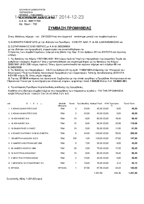 7. ΓΙΑ ΤΗΝ ΠΡΟΜΗΘΕΙΑ ΗΛΕΚΤΡΟΛΟΓΙΚΟΥ ΥΛΙΚΟΥ ΓΙΑ ΤΑ ΚΤΗΡΙΑ ΤΟΥ Ν.Π.