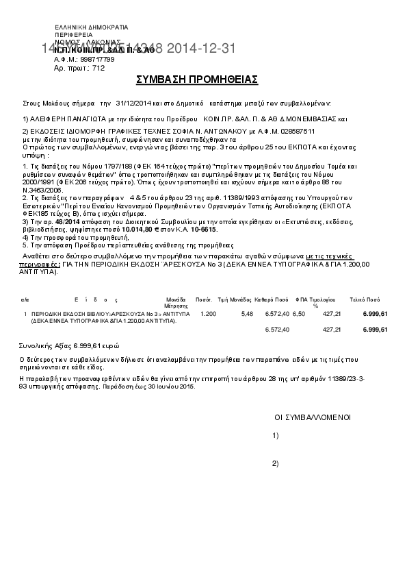 10. ΓΙΑ ΤΗΝ ΠΕΡΙΟΔΙΚΗ ΕΚΔΟΣΗ ¨ΑΡΕΣΚΟΥΣΑ Νο 3 (ΔΕΚΑ ΕΝΝΕΑ ΤΥΠΟΓΡΑΦΙΚΑ &ΓΙΑ 1.200,00 ΑΝΤΙΤΥΠΑ).