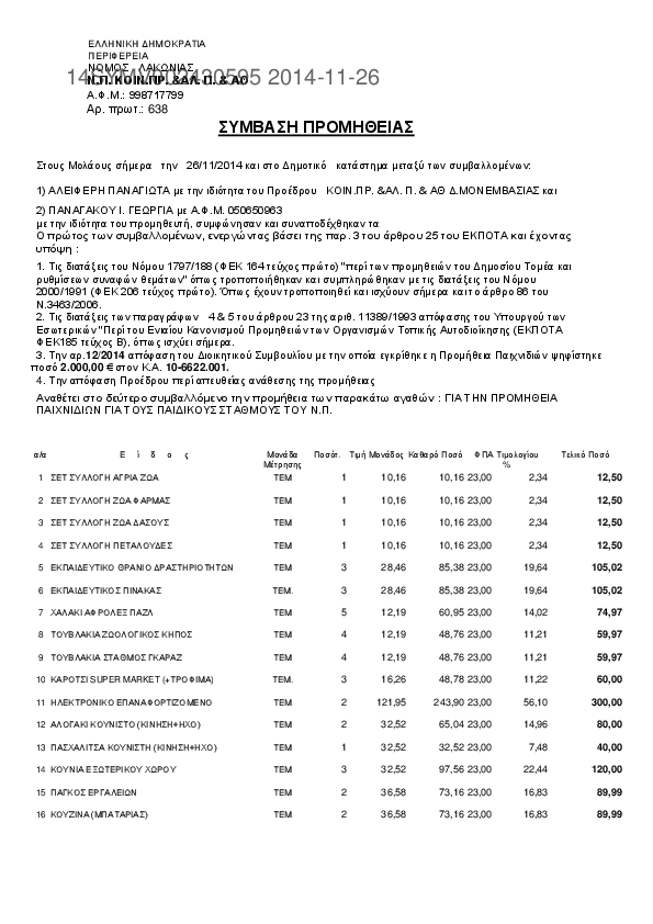 1. ΓΙΑ ΤΗΝ ΠΡΟΜΗΘΕΙΑ ΑΝΤΑΛΛΑΚΤΙΚΩΝ ΛΟΙΠΩΝ ΜΗΧΑΝΗΜΑΤΩΝ.