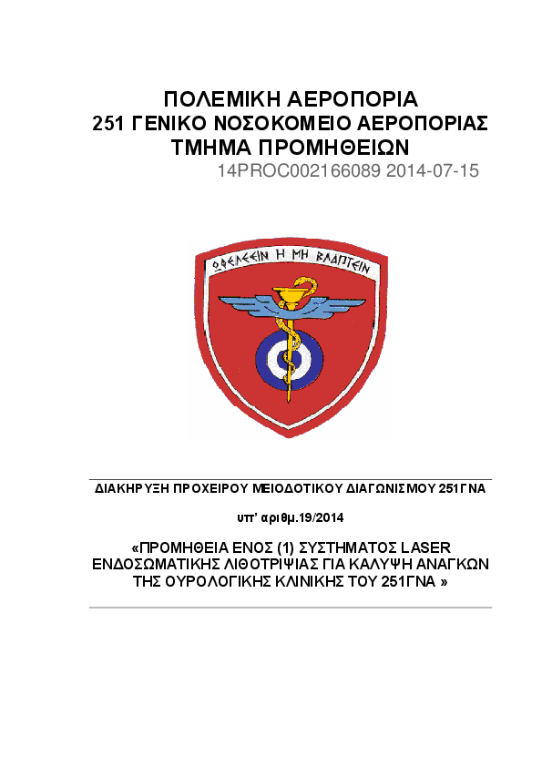 6. Διακήρυξη Πρόχειρου Μειοδοτικού Διαγωνισμού υπ’ αρίθμ. 19/2014 για την Προμήθεια Ενός (1) Συστήματος
