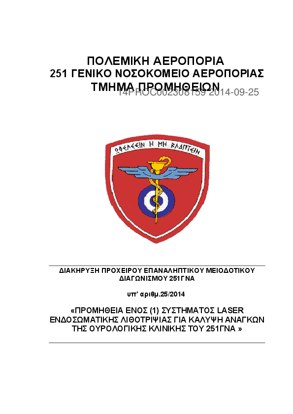 7. Διακήρυξη Πρόχειρου Επαναληπτικού Μειοδοτικού Διαγωνισμού υπ’ αρίθμ. 25/2014 για την Προμήθεια Ενός