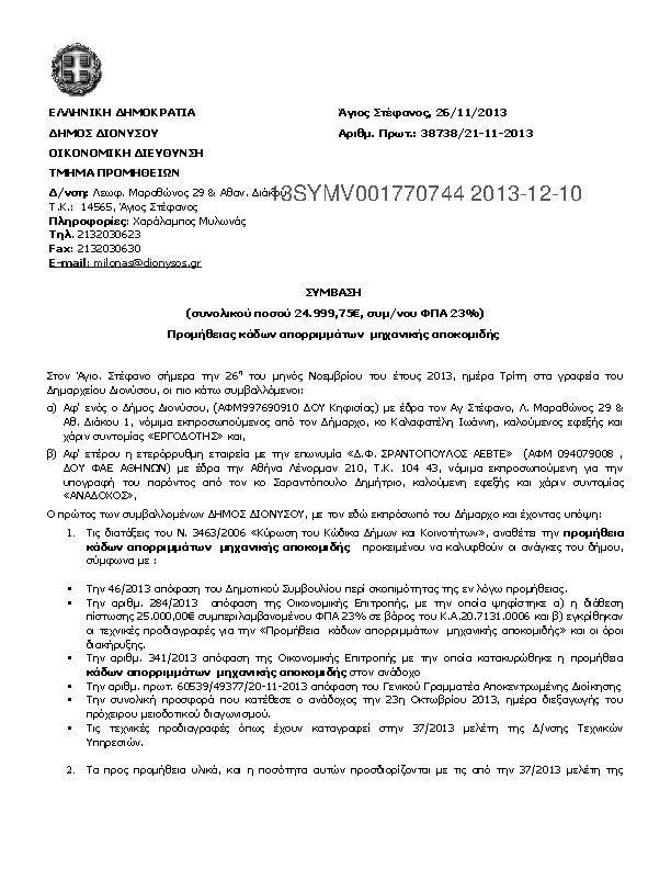 5. ΣΥΜΒΑΣΗ ΓΙΑ ΤΗ ΠΟΡΜΗΘΕΙΑ ΚΑΔΩΝ ΑΠΟΡΡΙΜΜΑΤΩΝ ΜΗΧΑΝΙΚΗΣ ΑΠΟΚΟΜΙΔΗΣ