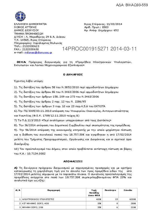 1. ΔΙΑΚΗΡΥΞΗ ΠΡΟΧΕΙΡΟΥ ΔΙΑΓΩΝΙΣΜΟΥ ΓΙΑ ΤΗ ΠΡΟΜΗΘΕΙΑ ΦΑΡΜΑΚΩΝ ΚΑΙ ΑΝΑΛΩΣΙΜΟΥ ΥΓΕΙΟΝΟΜΙΚΟΥ ΥΛΙΚΟΥ ΓΙΑ ΤΙΣ ΑΝΑΓΚΕΣ ΤΟΥ ΔΗΜΟΥ ΔΙΟΝΥΣΟΥ ΚΑΙ ΤΩΝ ΝΠΔΔ