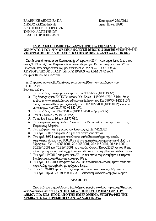 7. ΕΛΑΣΤΙΚΑ ΟΧΗΜΑΤΩΝ ΤΟΥ ΔΗΜΟΥ ΓΙΑ ΤΟ ΕΤΟΣ 2013