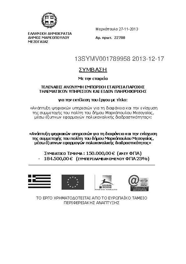 5. ΑΝΑΠΤΥΞΗ ΨΗΦΙΑΚΩΝ ΥΠΗΡΕΣΙΩΝ ΓΙΑ ΤΗ ΔΙΑΦΑΝΕΙΑ ΚΑΙ ΤΗΝ ΕΝΙΣΧΥΣΗ ΤΗΣ ΣΥΜΜΕΤΟΧΗΣ ΤΟΥ ΠΟΛΙΤΗ ΤΟΥ ΔΗΜΟΥ ΜΑ