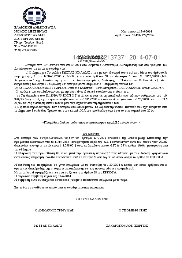 3. προμήθεια 2 ελαστικών για το ΚΗΥ2663 απορριμματοφόρου του Δήμου Τριφυλίας