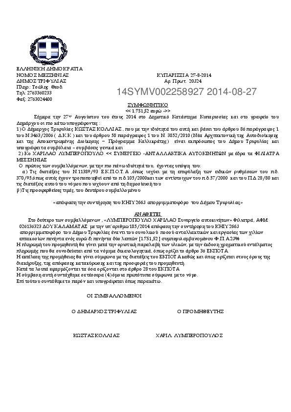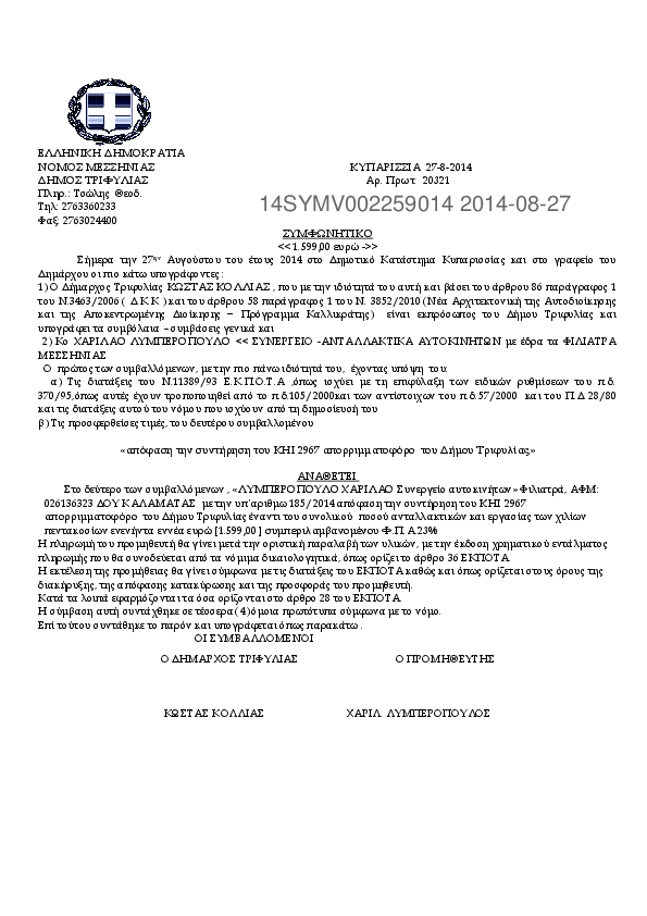 1. ΣΥΜΦΩΝΗΤΙΚΟ ΑΝΑΘΕΣΗΣ ΕΠΙΣΚΕΥΗΣ ΤΟΥ ΚΗΗ 3830