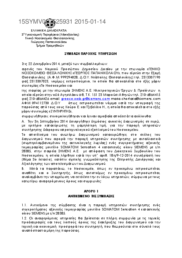 2. ΣΥΜΒΑΣΗ ΣΥΝΤΗΡΗΣΗ ΑΞΟΝΙΚΟΥ ΤΟΜΟΓΡΑΦΟΥ ΜΟDEL SOMATOM SENSATION 4 SIEMENS