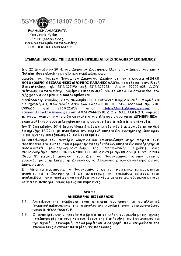 1. ΣΥΜΒΑΣΗ ΣΥΝΤΗΡΗΣΗΣ ΣΤΕΦΑΝΙΟΓΡΑΦΟΥ ΙNNOVA 2000 GE.