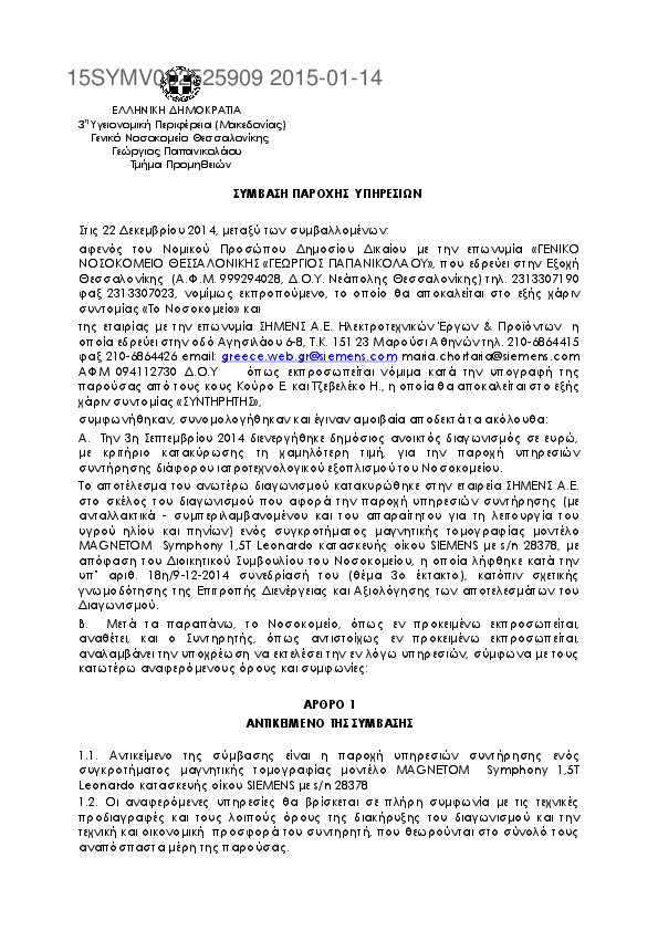 3. ΣΥΜΒΑΣΗ ΣΥΝΤΗΡΗΣΗ ΜΑΓΝΗΤΙΚΟΥ ΤΟΜΟΓΡΑΦΟΥ ΜΟDEL MAGNEMOT SYMPHOMY 1,5 T LEONARDO SIEMENS