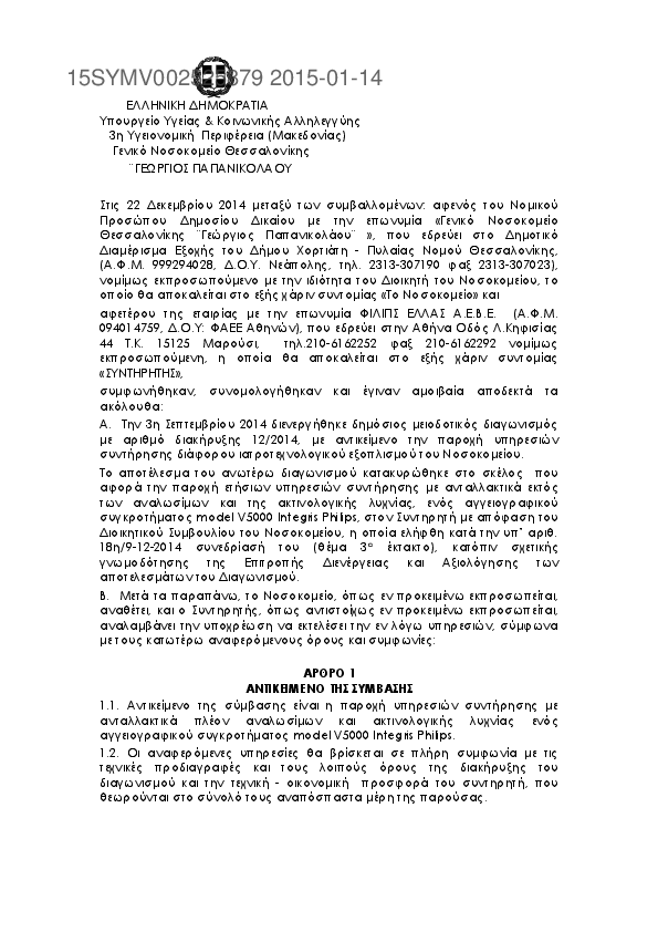 4. ΣΥΜΒΑΣΗ ΣΥΝΤΗΡΗΣΗ ΑΓΓΕΙΟΓΡΑΦΙΙΚΟΥ ΣΥΓΚΡΟΤΗΜΑΤΟΣ V5000 INTEGRIS PHILIPS