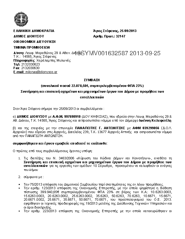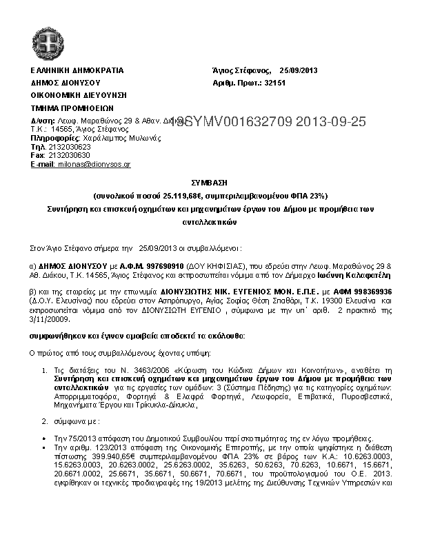 7. Συντήρηση και επισκευή οχημάτων και μηχανημάτων έργων του Δήμου με προμήθεια των ανταλλακτικών